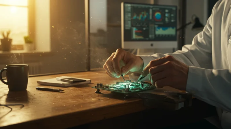 The fluorescent hum of the server room at Synergy Solutions always gave me a slight headache, but nothing compared to the migraine etched across David…